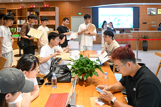 7月15日,湘钢在行政中心举行2024年大学生入职培训开班典礼。据悉,今年湘钢有163名大学生、研究生入职,其中硕博研究生75人,占比为46%。据了解,为使这些学子有“家”的感觉,湘钢提供“一站式”的服务,还举办入职培训班。培训期间,新员工们参观了湘钢厂史馆、艾爱国焊接试验室、五米宽厚板厂轧钢生产线等,对“钢铁是怎样炼成的”来了一次沉浸式的初体验。图为新入职湘钢的学子正在办入职手续。(特约通讯员 贺意波 摄)