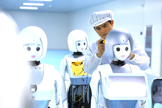 10月11日,由中国新闻摄影学会、中共金华市委宣传部主办的“高质量 发展看金华”暨全国百家媒体聚焦金华摄影采访活动在浙江省金华市启动。10月12日至15日,《中国冶金报》记者与《人民日报》、新华社等央媒,以及省地市县级媒体共100余家媒体记者组成的采访组,深入金华各地,以镜头为笔、光影为墨,捕捉产业脉动,解读时代魅力。图为10月12日,浙江恒东智能科技有限公司工作人员正在组装刚刚下线的机器人。该企业位于金华市金东区,凭借在智能控制、云脑超算和AI(人工智能)视觉等核心技术领域的突破,先后获得发明专利17项、实用新型专利50项、软件著作权25项。(本报记者 顾学超 摄)
