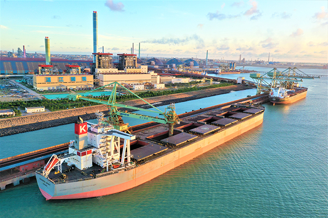 10月14日上午9时,宝钢股份湛江钢铁成品码头,载着万吨冷轧卷的“舟顺安5”轮缓缓启航(如图),标志着湛江钢铁—印尼国际班轮成功实现首航。此举是宝钢股份湛江钢铁积极融入“一带一路”建设、把握“海上丝绸之路”机遇的主动作为,为东南亚乃至更广区域的经贸合作搭建起又一 条高效稳定的物流通道。(李占轩 摄)