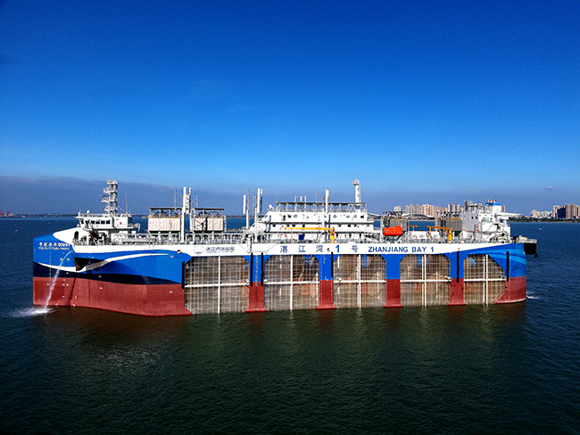 11月5日,全球首创漂浮式动力定位养殖网箱型工船试验平台“湛江湾1号”驶入湛江招商国际邮轮港码头并安全靠泊(如图)。据悉,这艘被称为“海上移动牧场”的“钢铁巨鲸”,平台总长为154米,总宽为44 米,养殖水体达8万立方米,分为12个独立的养殖区域,能够同时养殖多种鱼类。作为深海重器,“湛江湾 1号”适用于南海千米乃至万米水深的全海域养殖,极大拓宽海水养殖的生产空间。据了解,“湛江湾1号” 用钢100%来自宝钢股份湛江钢铁。(王推陈 摄)