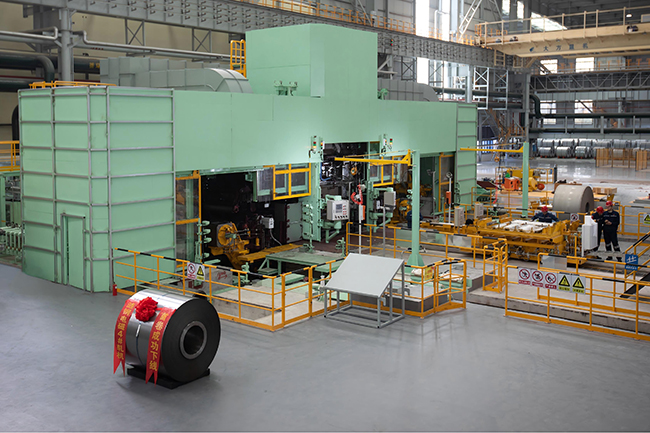 11月15日,湖南钢铁集团涟钢电磁材料公司首卷取向硅钢在其轧钢作业区4号轧机成功下线(如图)。这标志着湖南省高等级取向硅钢产业链实现“湘产化”,填补了中南地区高端电工钢空白,将为输变电、新能源汽车等下游产业提供核心材料支撑。(孙远平 摄)