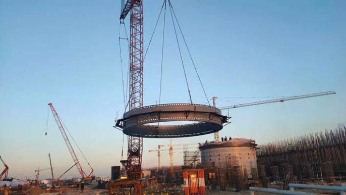 12月18日,随着320吨履带吊启动,38.6吨炉壳顺利就位,中冶京诚总承包的河北天柱钢铁高炉总承包工程第一带炉壳成功安装,实现了该工程的首个重要节点,为后续工程建设奠定了坚实基础。