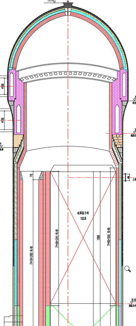 鞍钢集团朝阳钢铁厂2580立方米高炉内燃式热风炉炉壳利旧顶燃式改造砌筑图