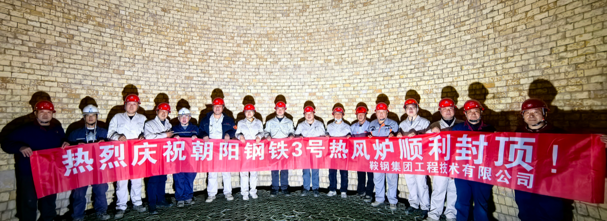 2025年10月17日上午,鞍钢集团朝阳钢铁(下文简称朝阳钢铁)2580m³高炉3号热风炉烘炉点火成功,标志着鞍钢集团首次采用由鞍钢集团工程技术有限公司和河南省豫兴热风炉工程技术有限公司(下文简称鞍钢工程和豫兴工程)共同设计承建的,采用原热风炉炉壳与热风出口标高双不动的在线改造技术,把朝阳钢铁原内燃式热风炉改造为悬链线顶燃式热风炉工程顺利烘炉。