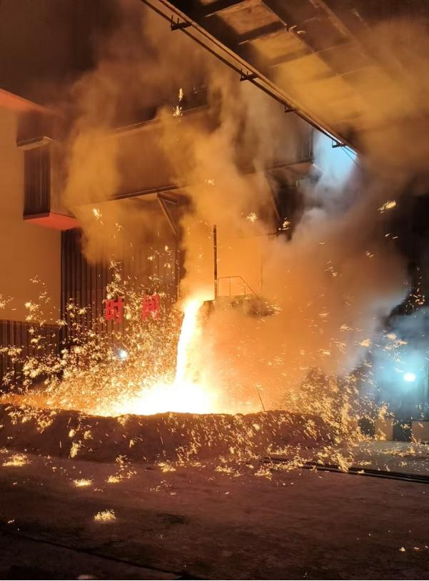 两座高炉同时放残铁