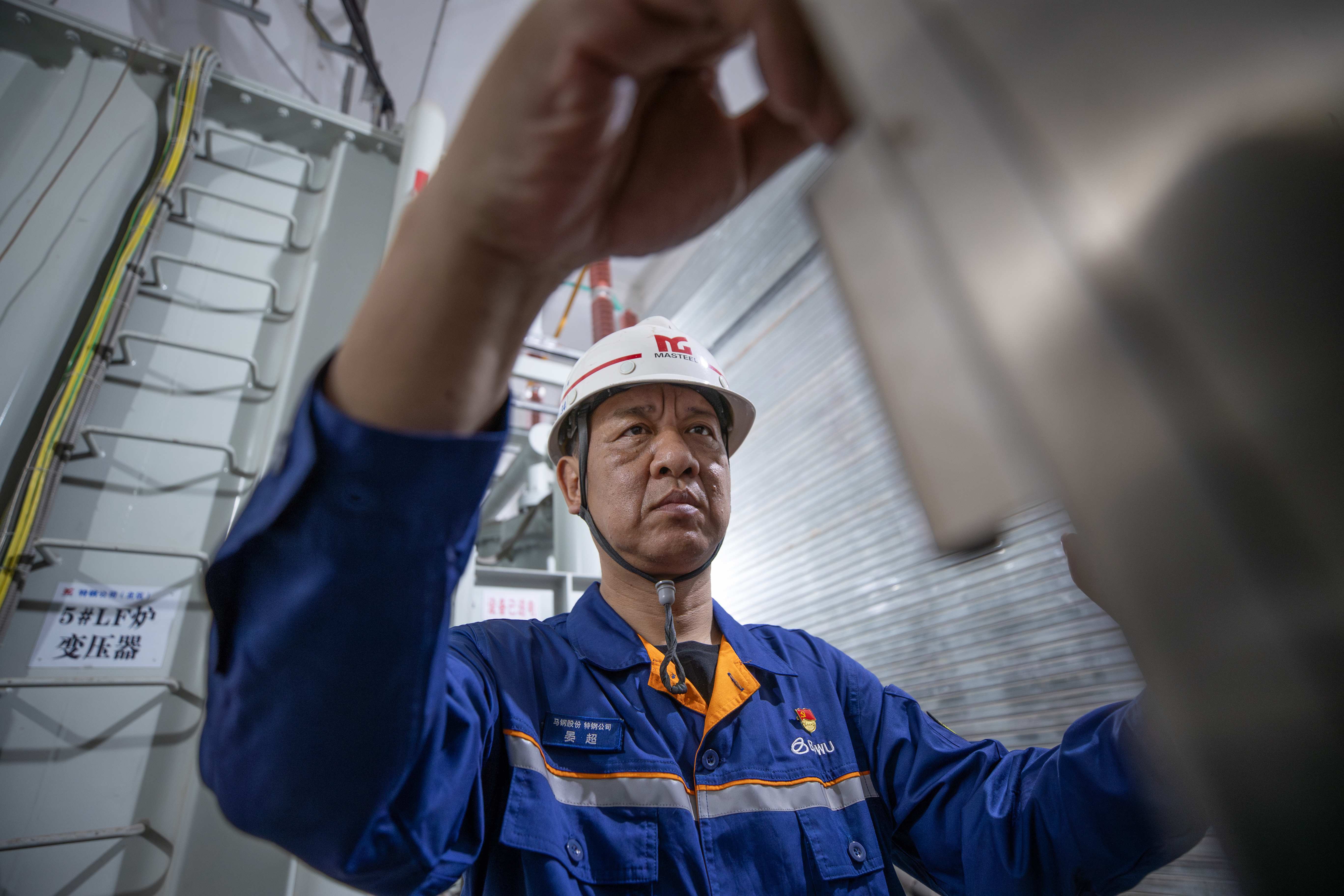 在中国宝武马钢有限特钢公司生产线上,设备管理室电气主任工程师晏超正细致巡查着电气设备。三十年坚守岗位,他用精湛技艺守护着生产的“神经中枢”。
