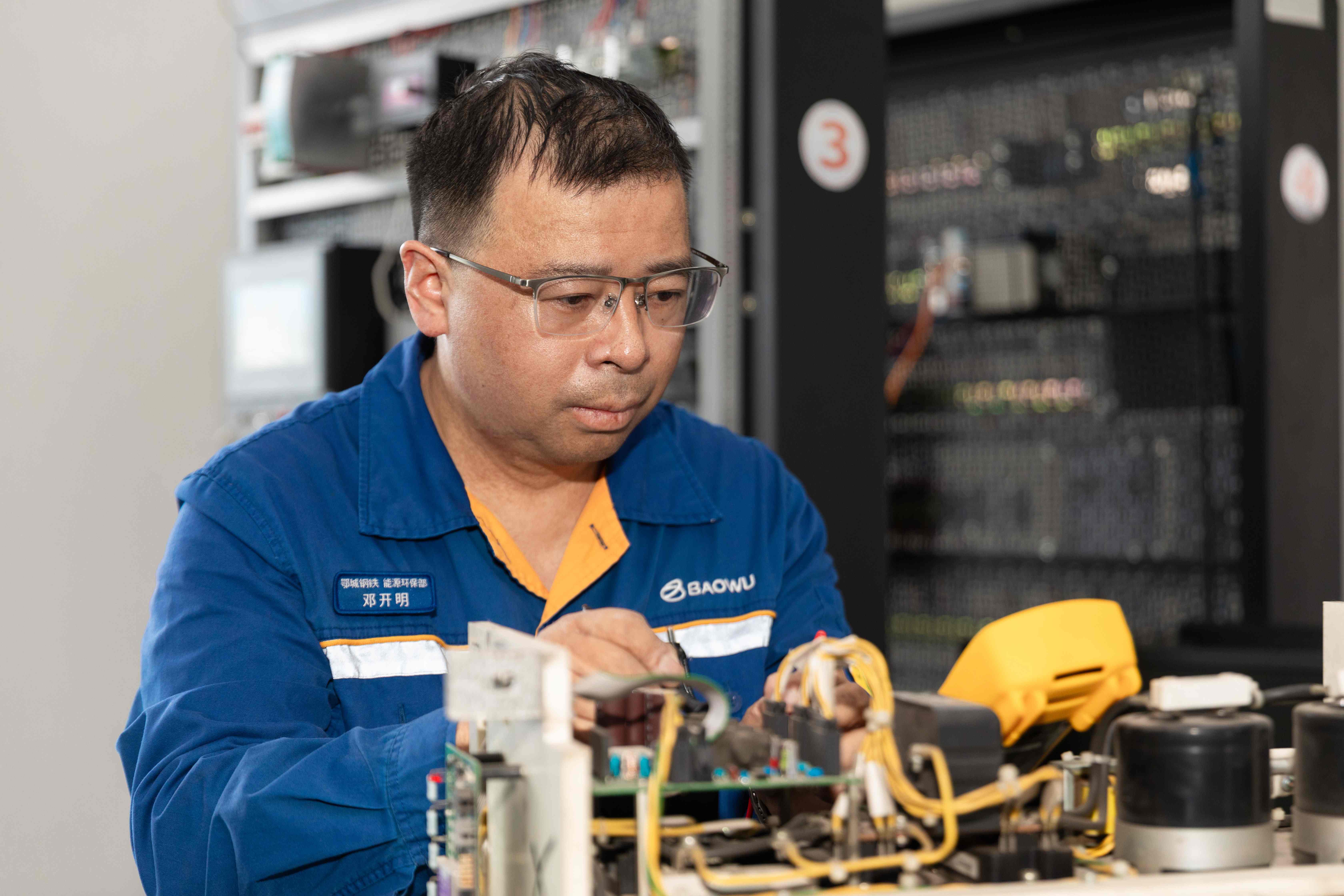 邓开明入职鄂城钢铁29年,现任能源环保部电气首席操作,是同事眼中“荣誉满墙”的技术标杆——全国五一劳动奖章、全国技术能手、湖北省五一劳动奖章等荣誉加身,鄂钢人更用“电气方面样样行;生产技改敢为先” 的俗语,赞其过硬本领。